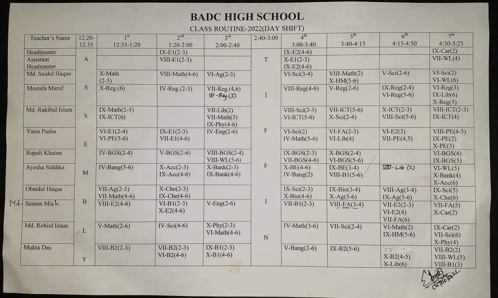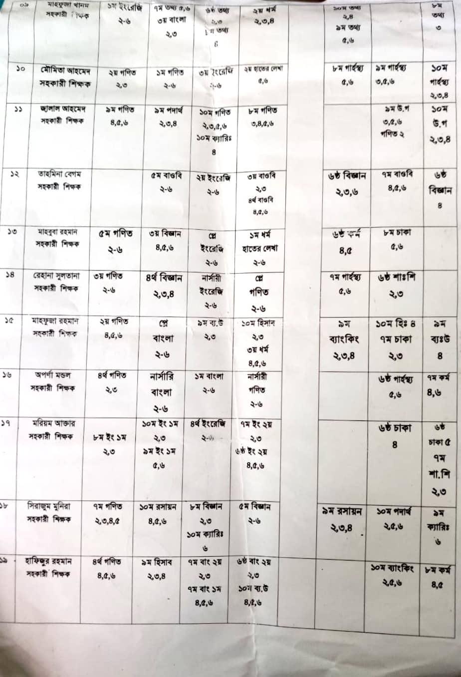 দিবা পর্বের শিক্ষক দের ক্লাস রুটিন