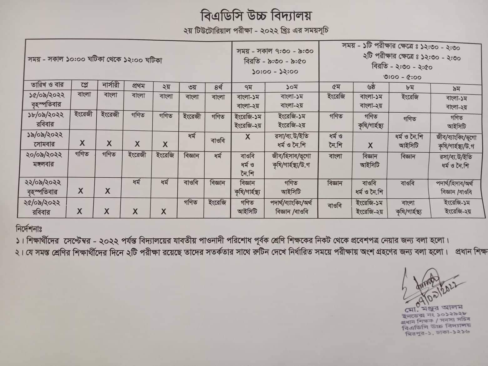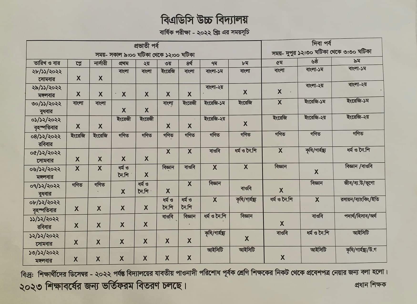 প্লে থেকে ৯ম শ্রেণি পর্যন্ত বার্ষিক পরীক্ষার রুটিন